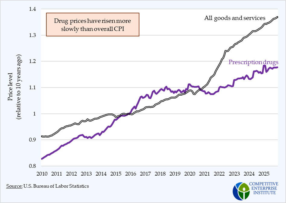 While the eye-popping prices of certain brand-name drugs receive many of the headlines, average prices show a less dramatic story. Over the past 10 years, when PBMs were purportedly a highly concentrated industry with myriad abuses, the price of prescription drugs rose more slowly than average prices did, and much more slowly than all medical care.
