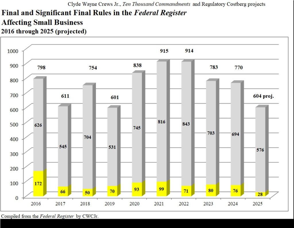 - The Biden years averaged 846 small-business rules per year, with 82 significant.