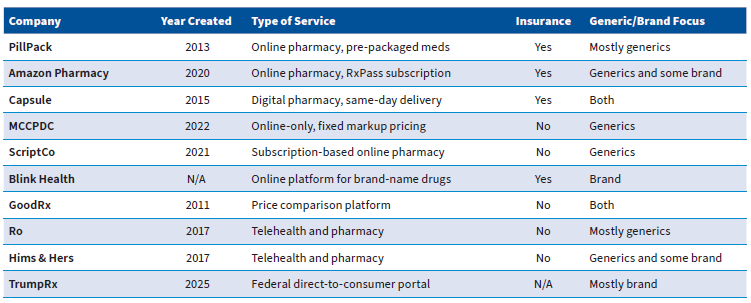 One of the newest entrants into the pharmaceutical drug market is TrumpRx. Announced in September, TrumpRx is a direct-to-consumer portal that will be operated by the federal government. Several companies have already announced their participation, including Pfizer, AstraZeneca, and Eli Lilly. Currently, the expectation is that TrumpRx will allow drug manufacturers to sell their drugs directly to consumers, bypassing pharmacies and PBMs entirely.