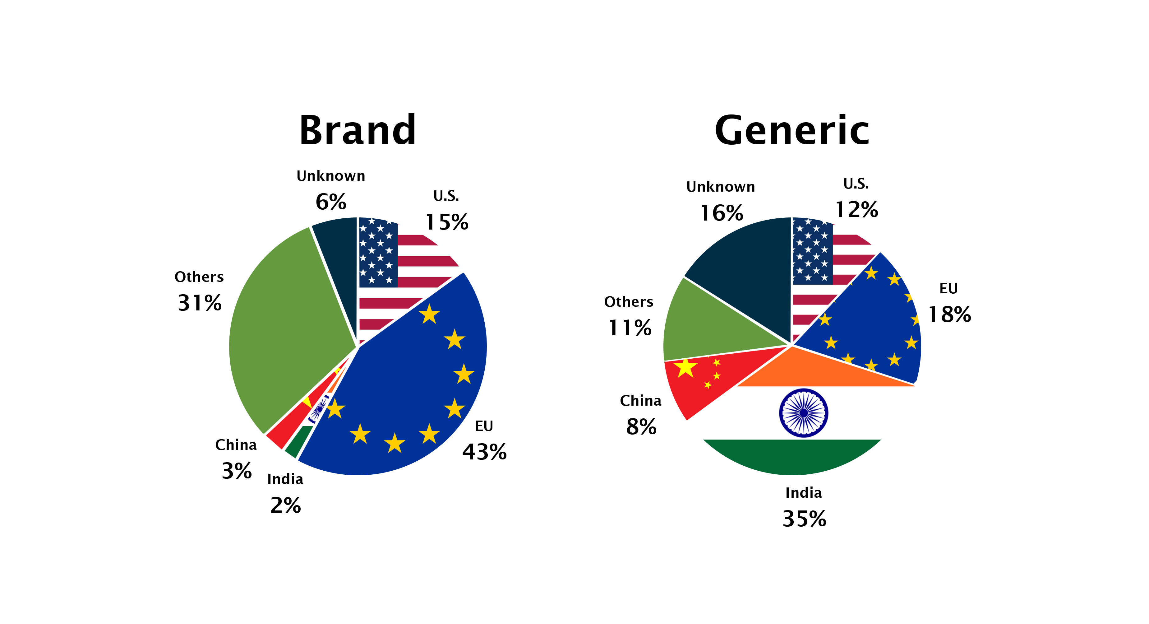 While APIs for brand-name drugs are primarily produced in Europe and North America, APIs for generic drugs are predominantly produced in Asia, and India in particular. India produces 35 percent of the world’s generic API supply (by volume). The EU produces 18 percent while China produces only 8 percent.